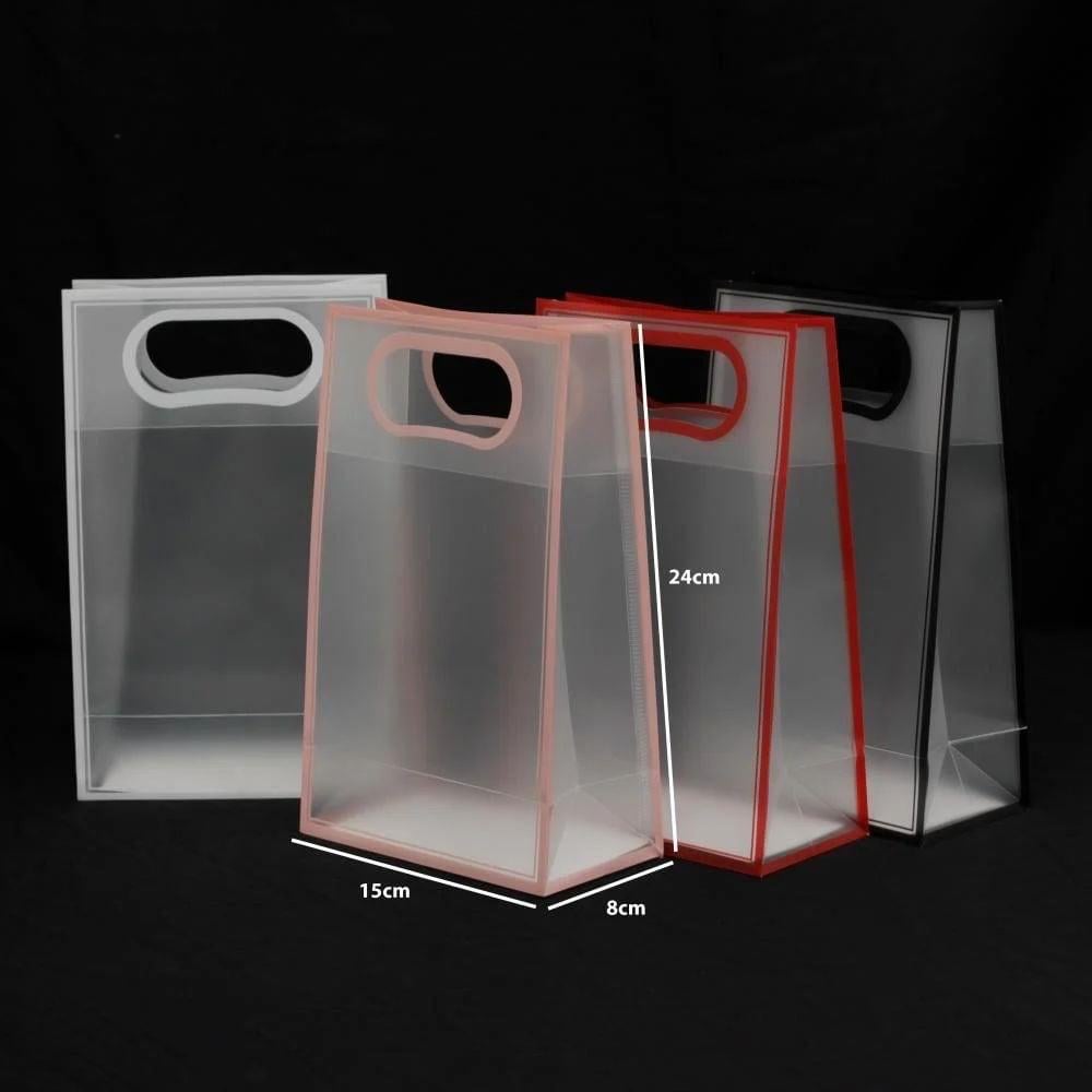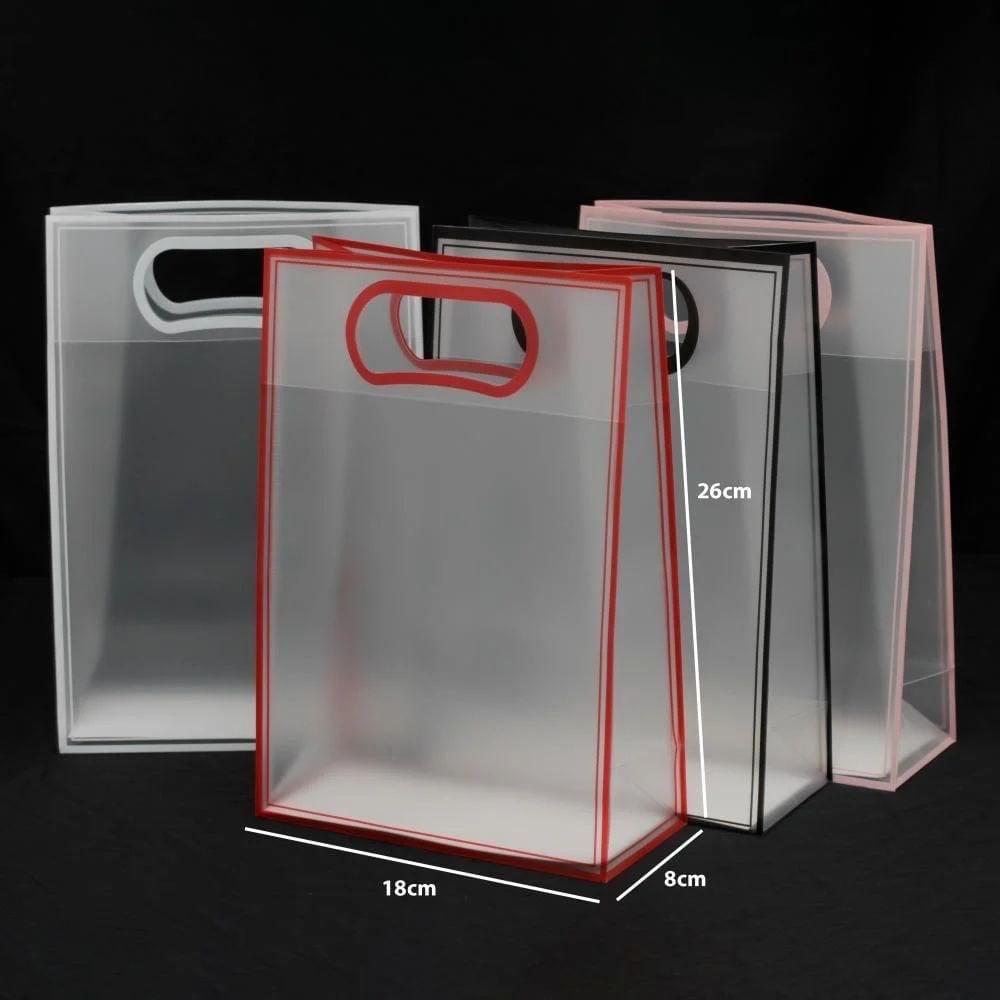 أكياس هدايا باللون الثلجي الشفاف مع حواف ملونة